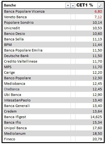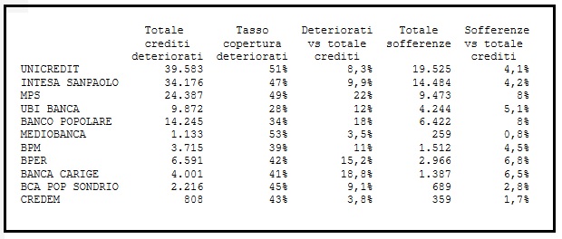Inoltre, mostriamo alcune tabelle che riportano i dati relativi al CORE TIER 1 e alle SOFFERENZE CREDITIZIE dei principali istituti italiani: