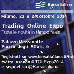 Ospitato a Palazzo Mezzanotte, sede della Borsa Italiana, l’evento vedrà la presenza di oltre 40 espositori e offrirà la possibilità di incontrare i broker online, gli emittenti e tutte le società legate al mondo del trading. Il TOL EXPO è rivolto ai trader professionisti ma soprattutto ai piccoli risparmiatori interessati a conoscere strumenti come gli ETF, i certificates, i covered warrant e i derivati, grazie a seminari tenuti da brokers, traders e associazioni.